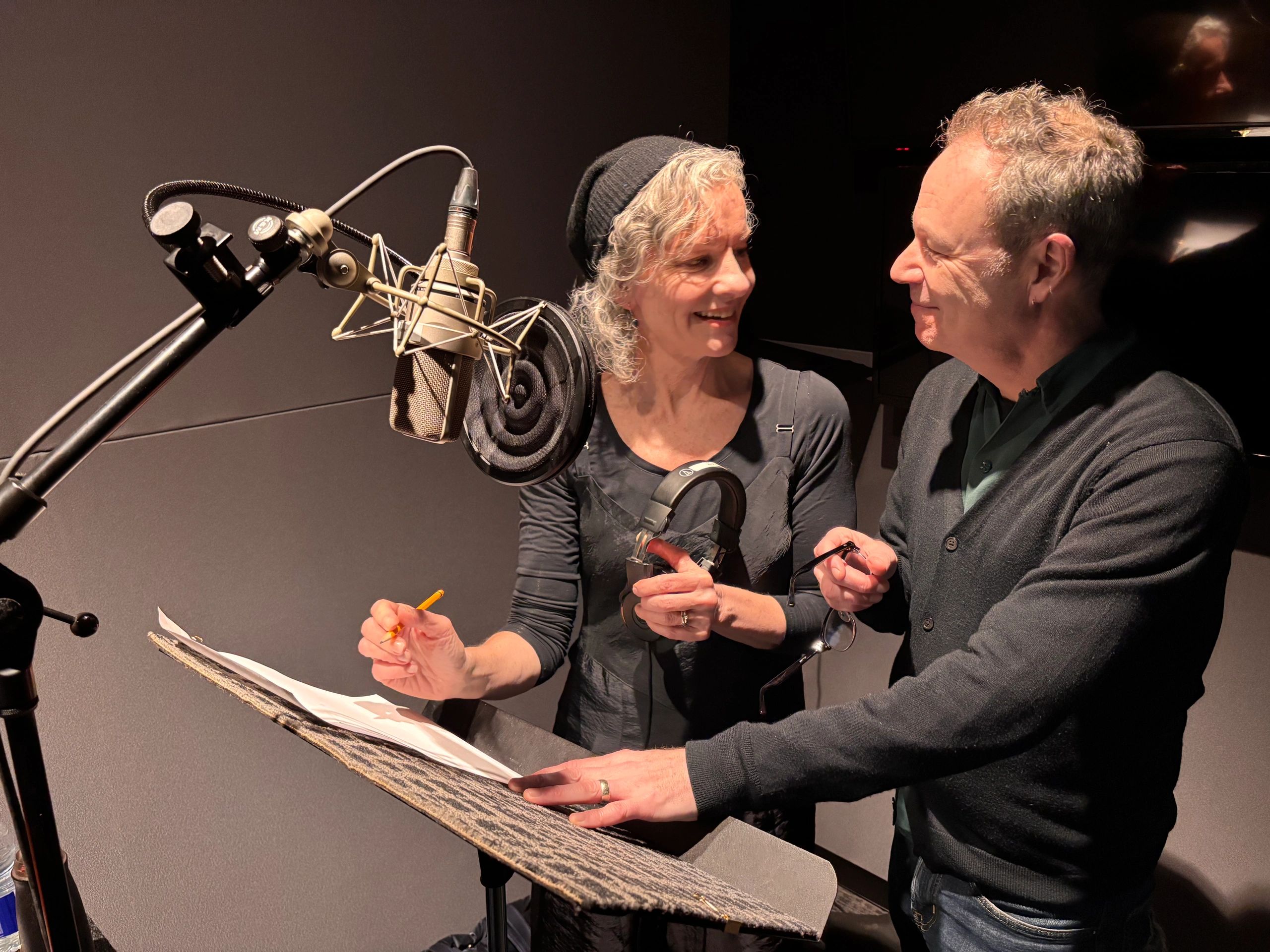 The 'just printed', unspoiled script on the music stand is ready for the voice talent to arrive. Well, unspoiled until the Creative Director sharpens his pencil and the "Record" light goes on.